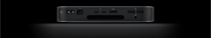 Incluye puertos Thunderbolt 4, USB-A, HDMI, Ethernet (opción hasta 10 Gb) y audio de 3.5 mm, lo que facilita conectar monitores, periféricos y redes de alto rendimiento.